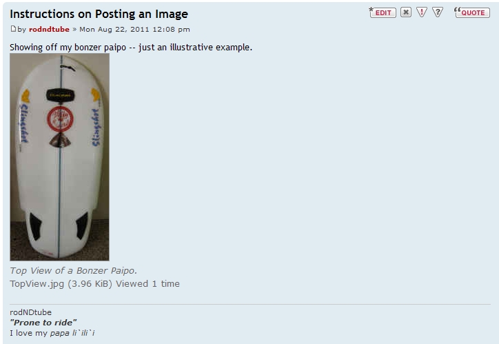 Topics to be covered include (1) making a basic image post vs. an "inline" attachment post and (2) posting an image from your computer vs an Internet URL. First we will go through the basic steps of posting an image from your computer.