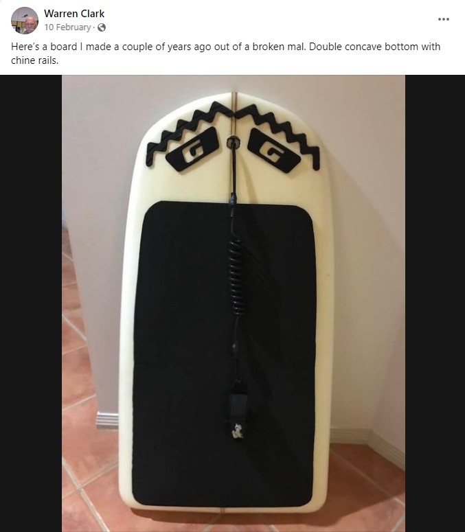 https://www.facebook.com/groups/paipobe ... 635875080/ The hands cutouts are not really a problem when riding the board, I just don't think about it. They could be handy to attach a leash or a handle. The nice thing about this board is the outline, and the rocker. My previous boards were hand made plywood boards, no rocker and straight rails. They were a bit faster in small waves but I find this outline more efficient for quick turns, it works a bit like a boogieboard, more dynamic. Someone with the tools and the will to make his own could just imitate this outline, get some rocker using boiled water to bend the nose and get a nice functional board.
