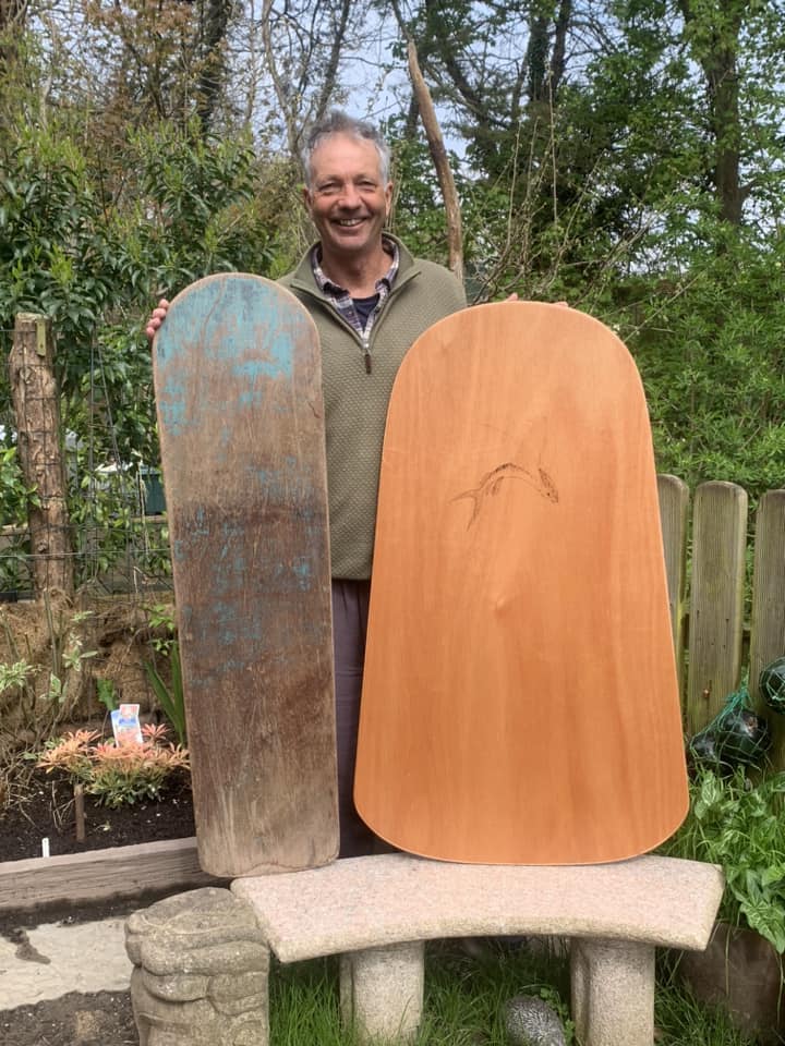 I bought the red Hawaii Paipo Design board initially and was totally blown away by it’s speed, the skimming sensation and the feeling of being so close to the wave. A very similar sensation to body surfing but with the speed to make fast breaking sections. I put off making my own for some time, but then curiosity got the better of me, and I bought some 1/2” marine grade plywood. The plywood boards are slightly heavier which gives extra momentum and distance. You have to move about on these guitar pick shapes more, but I am a longboard rider, so I am on familiar territory there. The design originated from the longboard era from surfers who also rode stand up boards!Sean Ross called them body surfing boards, which sums them up perfectly in my humble opinion! They make me smile!