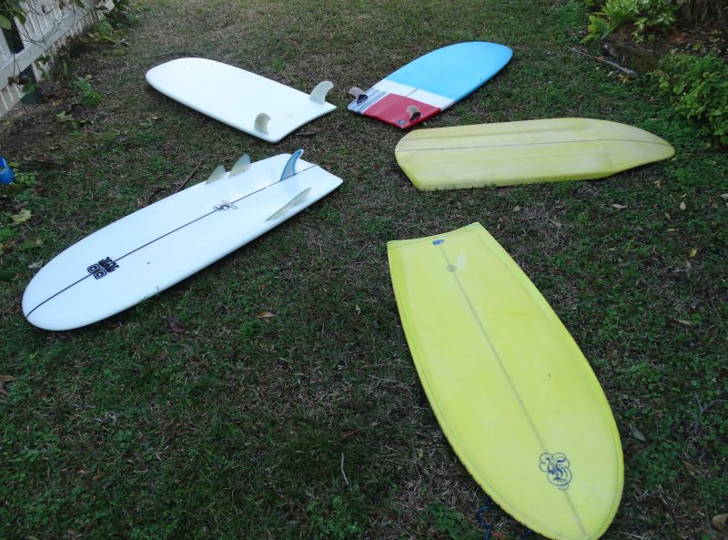 Here's a pic of most of my boards. All shaped by me and ridden regularly except for the 5'4" alaia looking board, which needs some rail repair and better sealing.