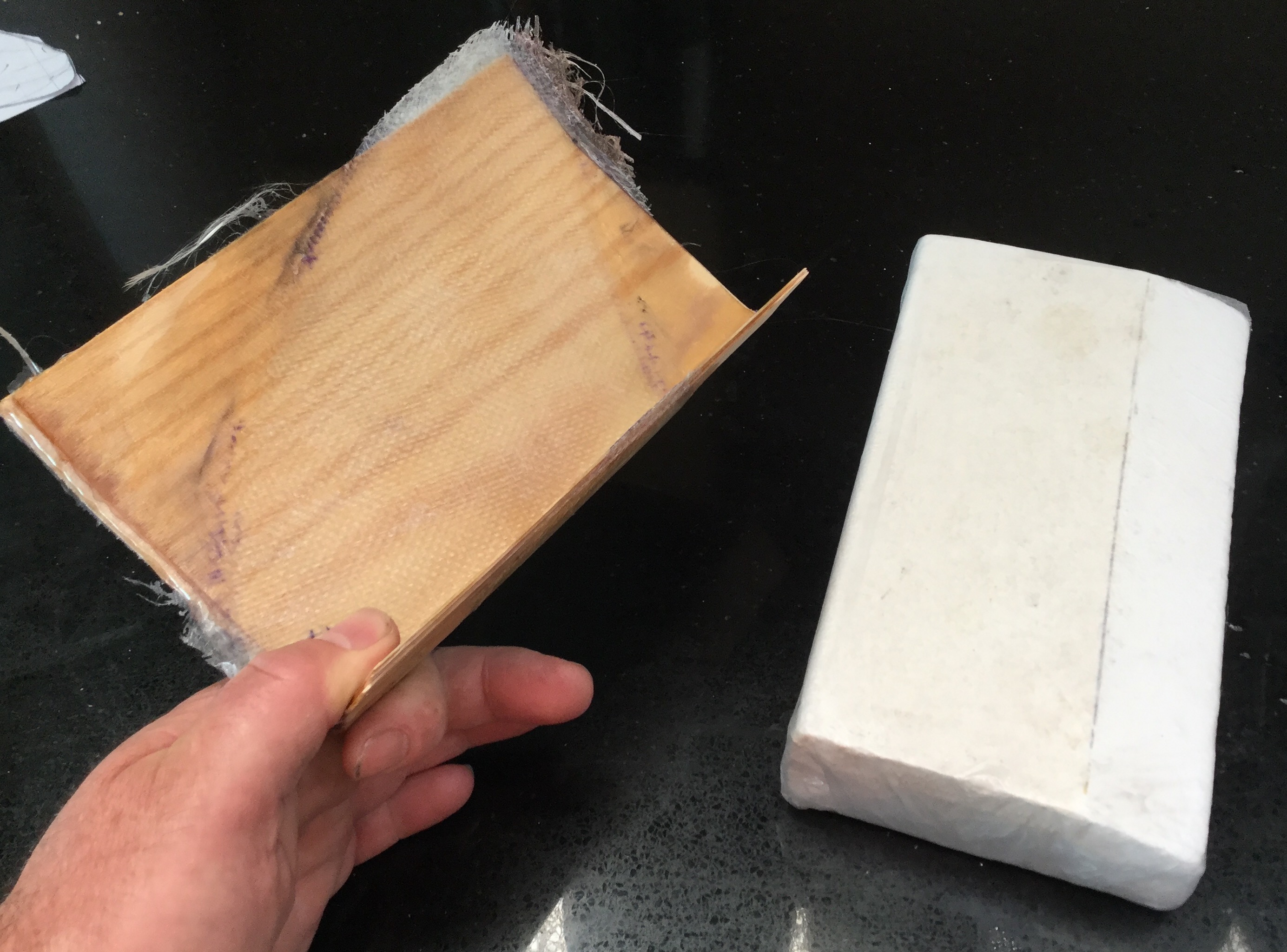 Here's the paper plan and the foam block that I will vacbag layers of glass, carbon and veneer over.