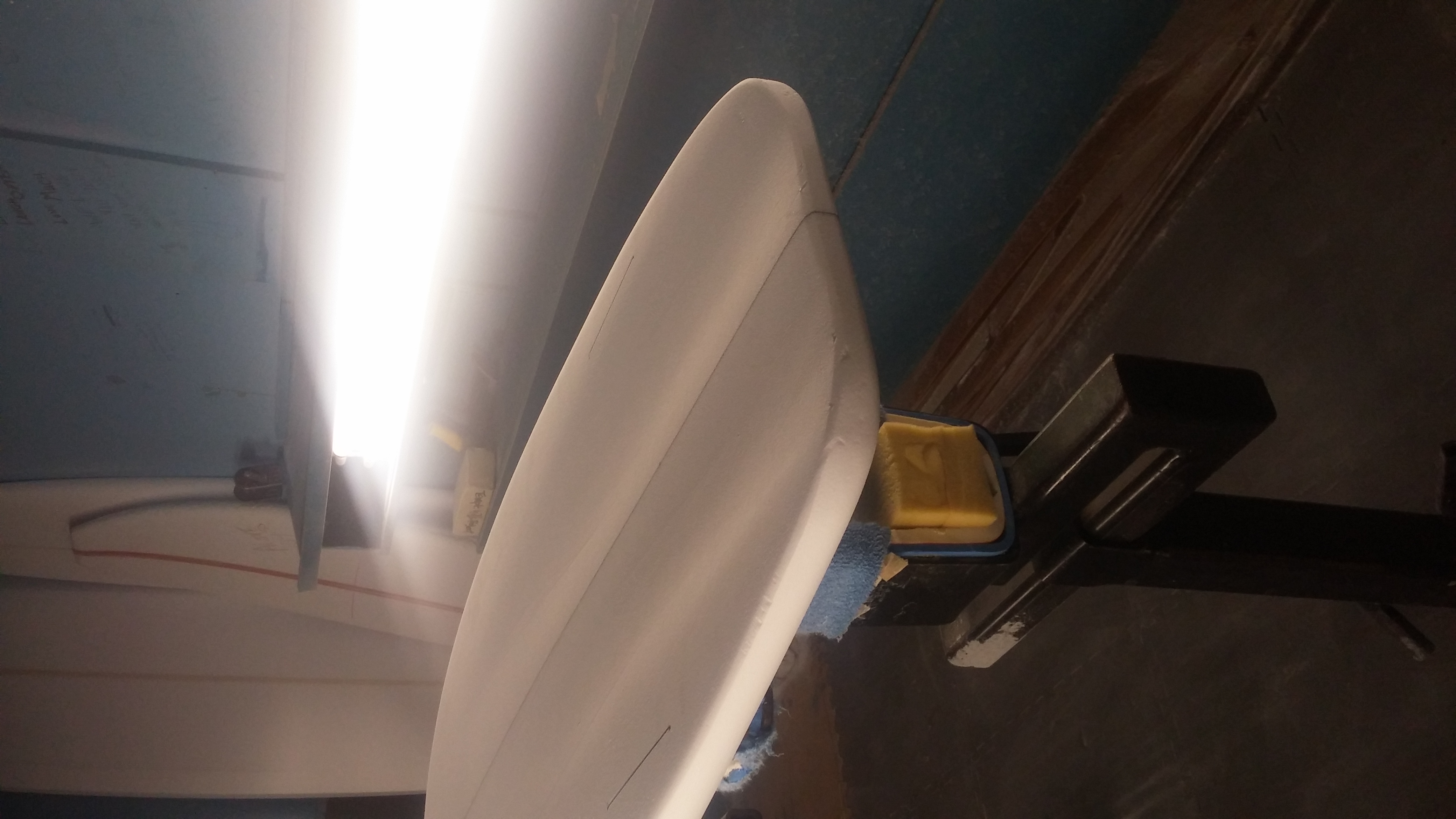 I think I never put finished pictures up of my boards just roughed out ones. Thanks James and Steven with this being somewhat of a mashup off a kneeboard/paipo I kept it more of a knneboard as far as outline goes. Nose and tail widths are 18" at 12" back, maybe Nomas can confirm his tails are around 19" or 20". Plus having more of my body out of the water with the added length having a wider tail may be harder to turn.