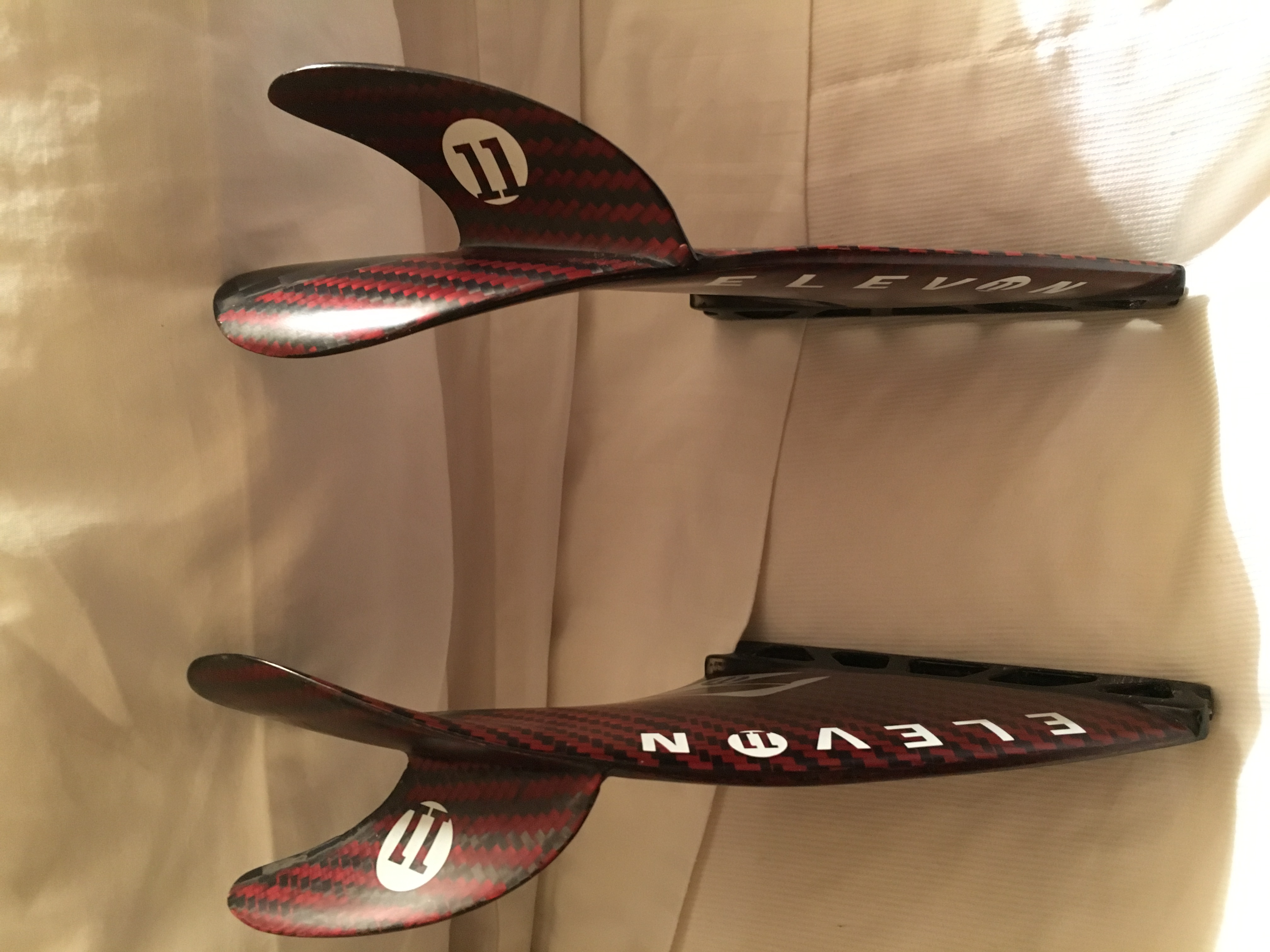 As part of my foiled fin collection I have also the matching side FCS side fins that at one point in time were sold in conjunction to the 3D smaller center fin model-- these work best as foiled fins since they are designed to be mounted in the side fin boxes of my Paipo's and grip much better in the waves face
