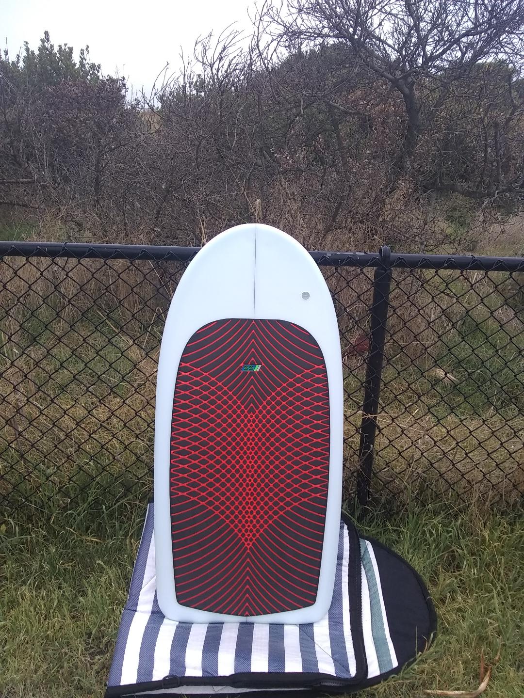 Had some decent waves Thursday morning caught a head high wave and I just flew down the line for about a 100 yds. Board held a line real good. Thanks Rod the cove pads are the best.