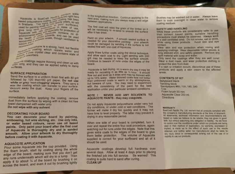 I bought the surfie 18 months ago. I presumed that he was ok with the Aquacote because it is water based. Will send a pic of the board