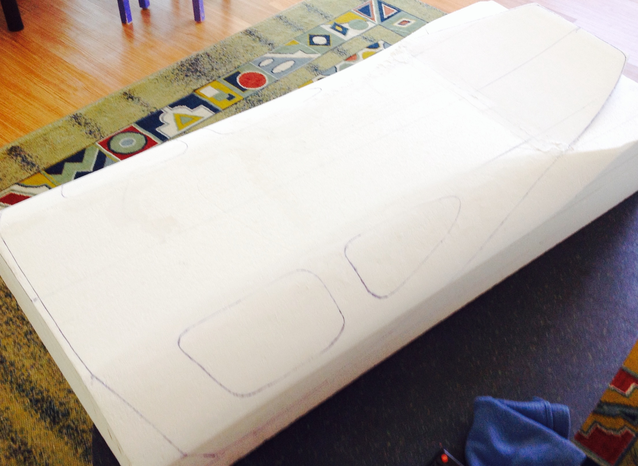 Here's the basic planshape, it looks too wide in the tail but remember the sides are rolled down so it won't be as wide as it looks.