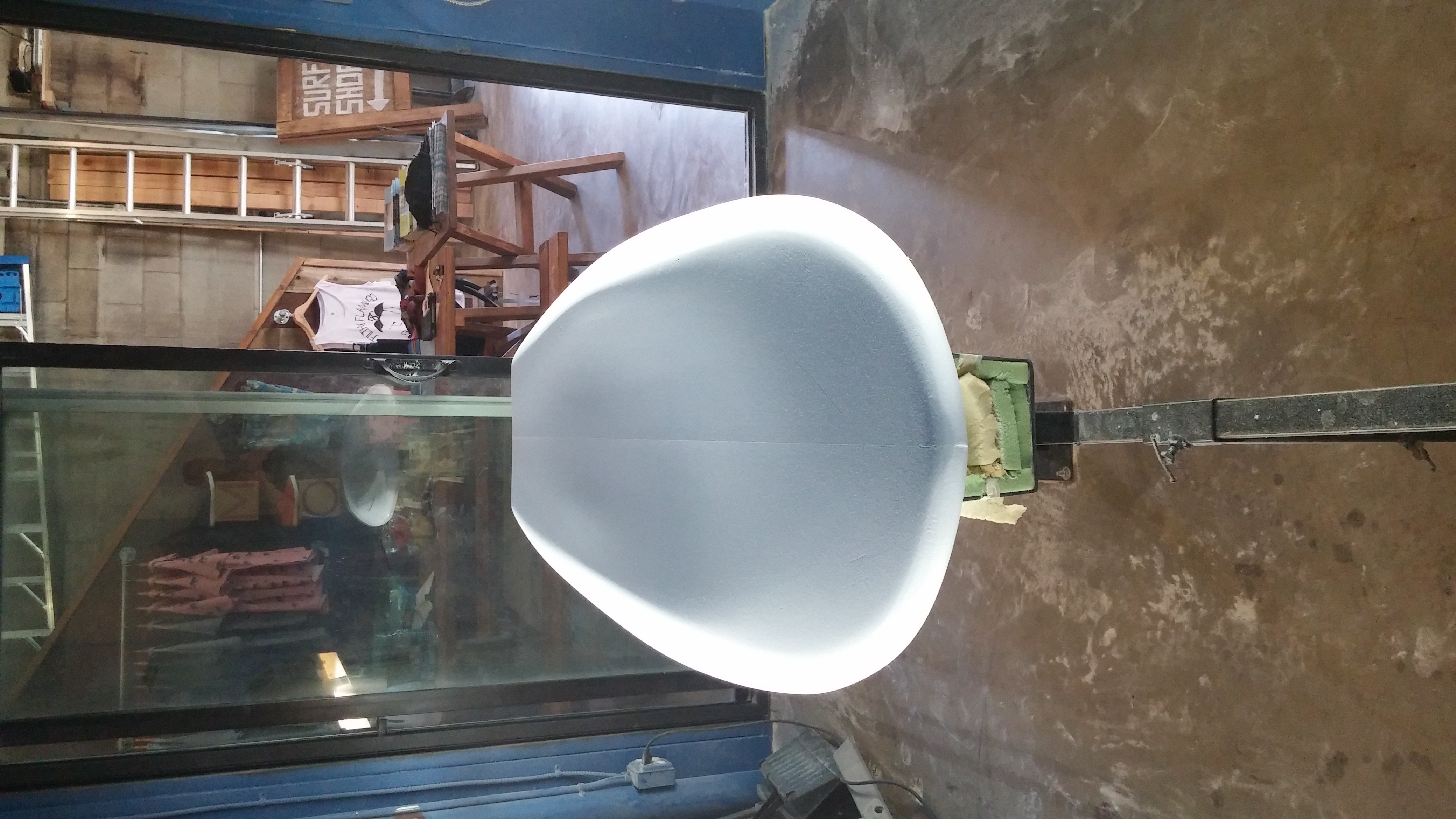 Here are some pics. The place I shape out of made an offer I can't refuse so I'll be glassing it as well, It's a poly blank glassed with epoxy.