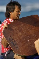 Annual Buffalo Big Board Surfing Classic, at Makaha Beach, Oahu. In 1976, upon returning from the Hokulea's maiden voyage to Tahiti, Buffalo Keaulana wanted to do something to give back to his community and perpetuate his Hawaiian culture. That's when he started the Buffalo Big Board Surfing Classic, now in it's 35th year (2011). Buffalo explains, “I wanted something for the old-timers to enjoy.” Buffalo wanted something to bring out those who don’t usually surf in contests, something that doesn’t rely so heavily on judgement calls, something that uses big boards (10 feet and over), and something that is fun. The first Classic, in 1977, had only a men’s open surfing division. As the event evolved, bodyboarding was added to the list of Classic events. There were solo divisions, but real ingenuity centered on a team event where two people shared a wave together. A weight division weighed-in for longboarding and bodyboarding to give the big guys (250 pounds and over) their time for fun. Even, a special bodyboard (bullyboard) was created by Gary Fischer of Wahoo International. Forms of surfing that had almost died out, also were revived: tandem, canoe, bodysurfing, paipo, Beachboy style (stand-up-paddle) surfing and, in 2009, the Alaia Board Division. This last division uses skegless, wood replicas of boards used by commoners during the Hawaiian Monarchy.