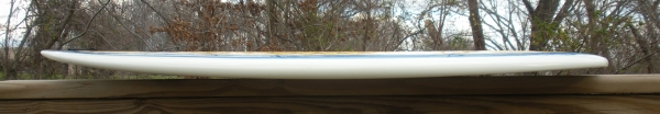 Update: Rode the board in Costa Rica during my March 2012 trip... TBD, The forward third are soft egg rails slightly turned under and the rear two-thirds are increasingly hard turned under rails. The board has a 3-fin box set-up. These sidebites have little angle (toe-in), if any, more like a traditional fish. To borrow another person's words, "Faster, more lined up and bigger waves requiring longer turns and high speed trims tend to desire more parallel side fin positions." My small sidebites (~2") are used in tandem with a single center fin (4.0" to 5.0" range normally; Update: 4.0" to 4.5") that can be adjusted forward or aft depending upon wave conditions. The pigment work by