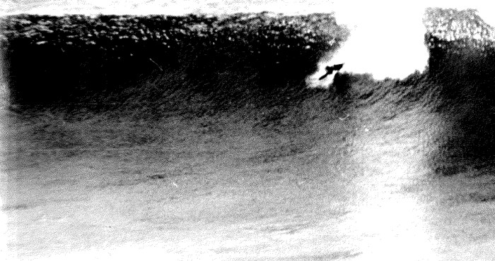 Bryan Hayden making the drop at Winkipop, July 1970. Bryan says, "probably the best wave during the best session for that year as I