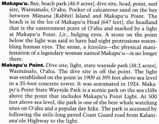 Note 1. The location, history and origin of the name Makapu`u.