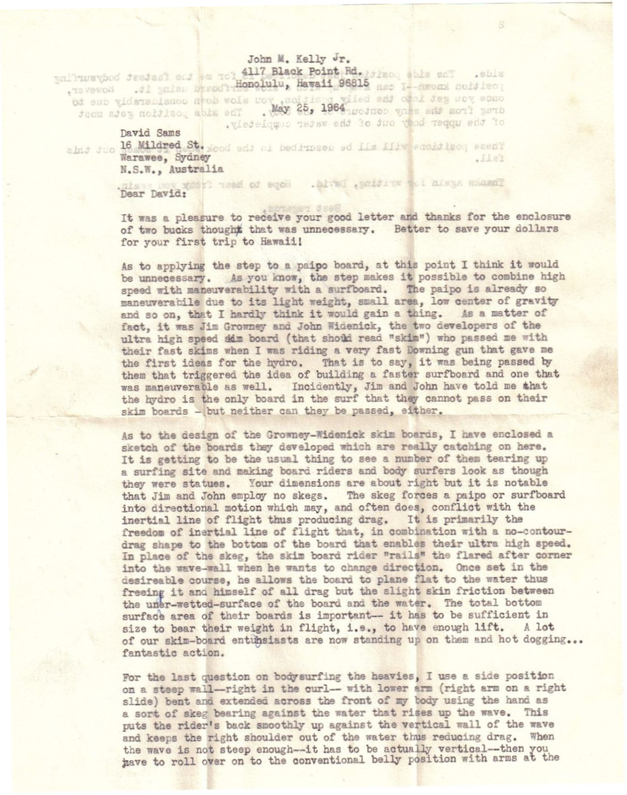 paipo like he'd seen in a movie. Amazingly, Dave kept the letter from