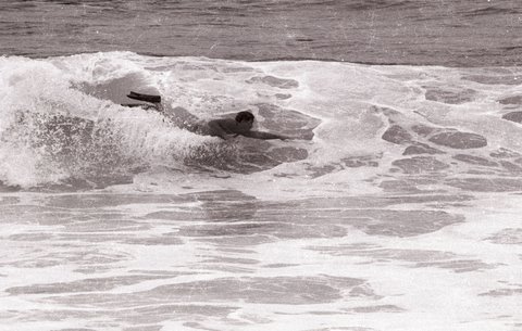 Dennis bodysurfing - May 6, 1964, at The Bin.