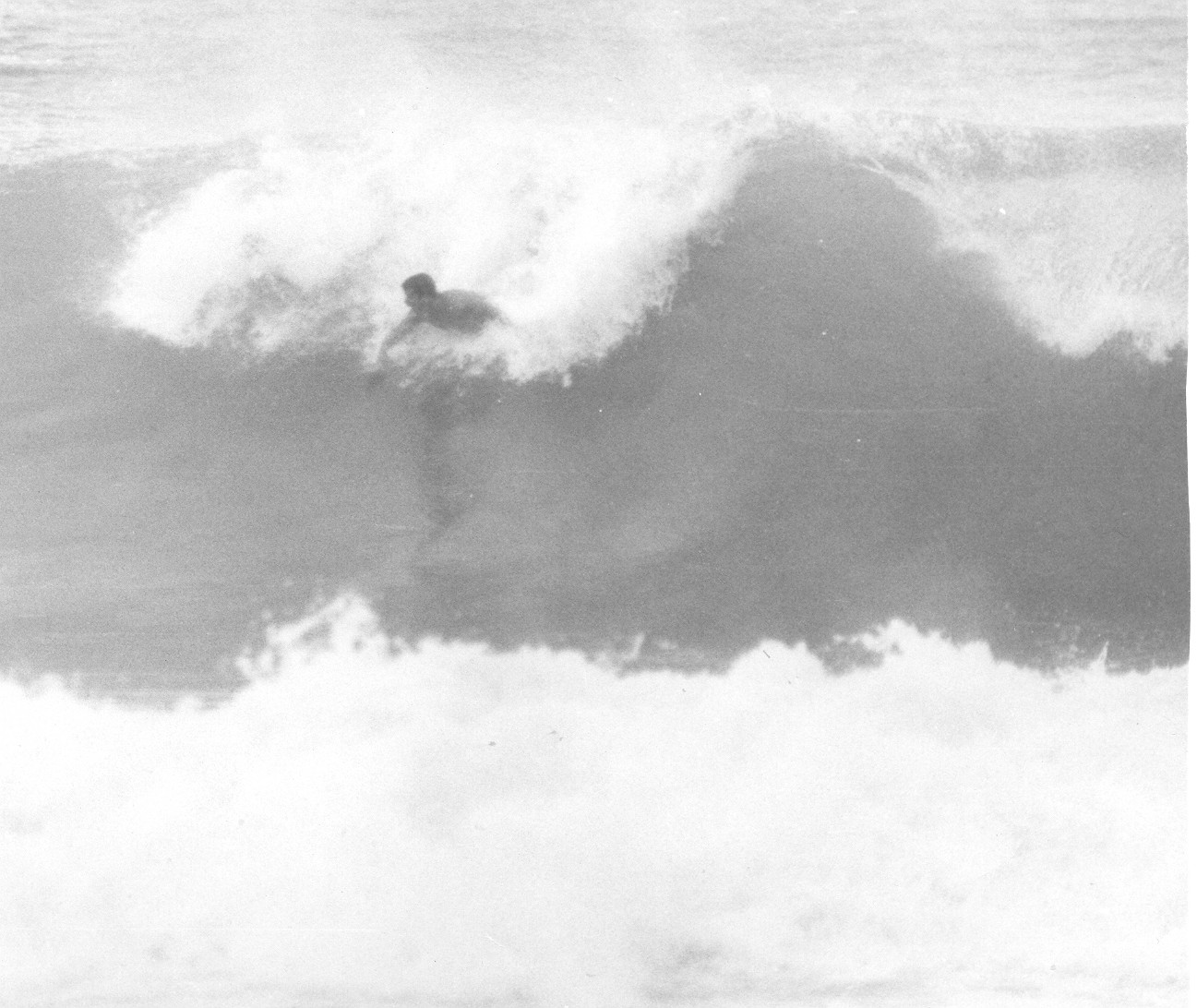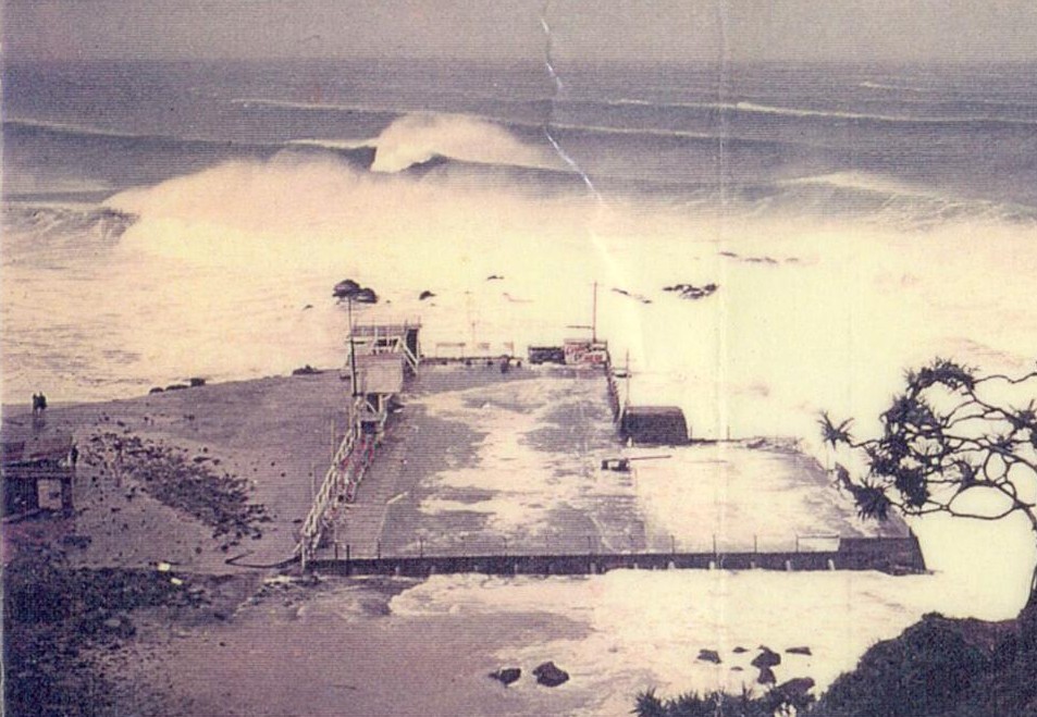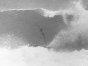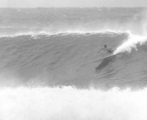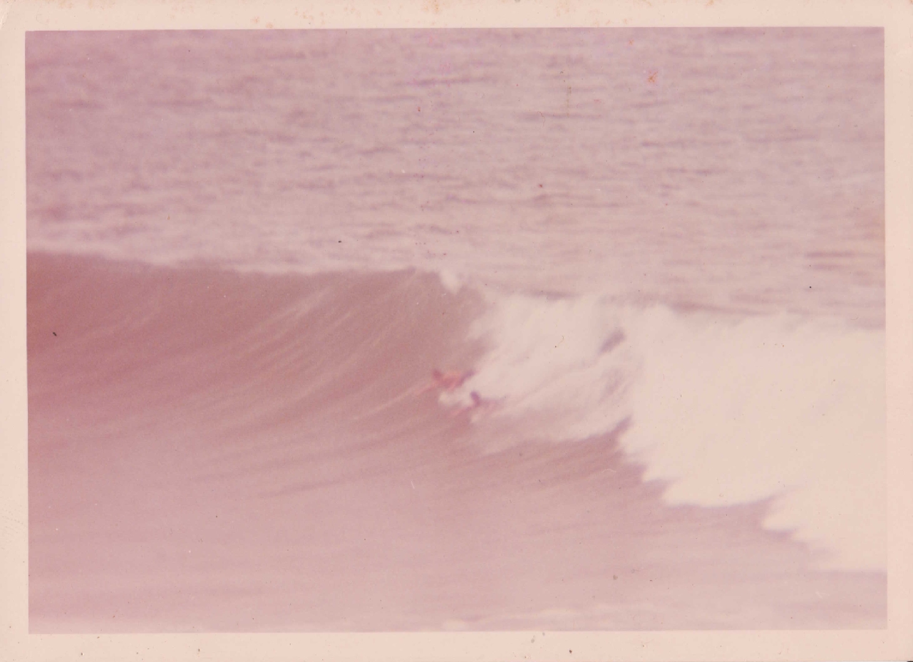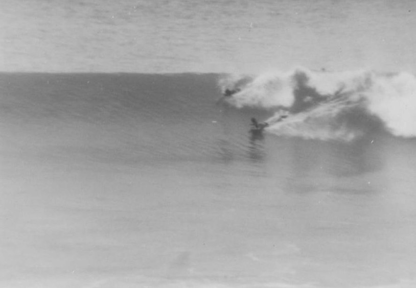 bellyboards/ When was this? It was a legendary day when we were bodysurfing Kirra in probably the best cyclone surf ever experienced at Kirra, on 3 February 1965 (see below). There were only a few out, Col. Taylor and Bogangar Bob on conventional boards, and around 5 of us body surfing with flippers. After surfing for 5 hours we met Bob McDermott up from Maroubra. Later on we took him out for a wave. He had one of the these ply bellyboards which were in vogue at the time in Sydney. Bob was working on a trawler at the time, out from Tweed Heads, and we became good friends, life-long in fact. Kit Carson eventually married his sister. Bob McDermott became known as ‘Bellyboard Bob’ which was a little confusing as Bob Ryan was known as ‘Bogangar Bob’ at the time. |