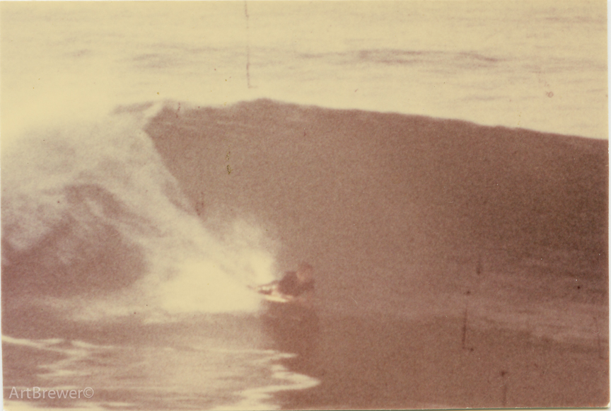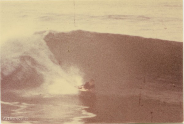 (Below right) Art Brewer again riding a mat at Val's Reef, inside