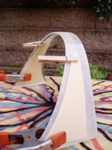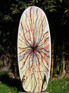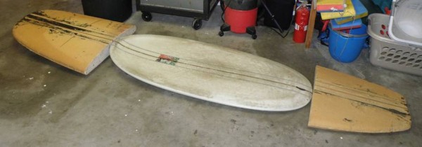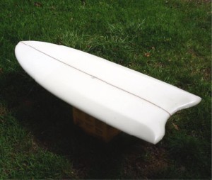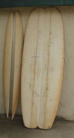 (Left) The acid splash board is from a Clark Foam "fish blank." It has a slight forward