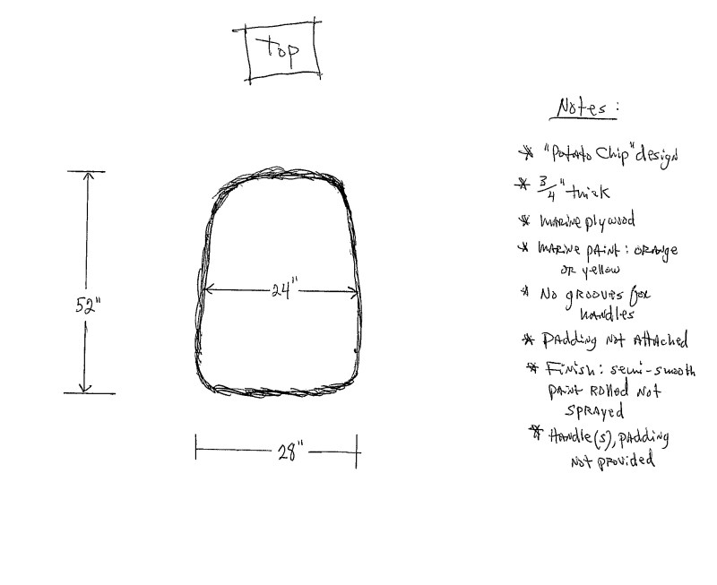 width: 28" across. Shape where the description "Potato Chip" came from.