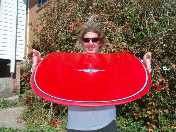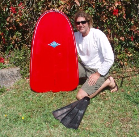 Justin Bullock with the Vinny Bryan paipo board |