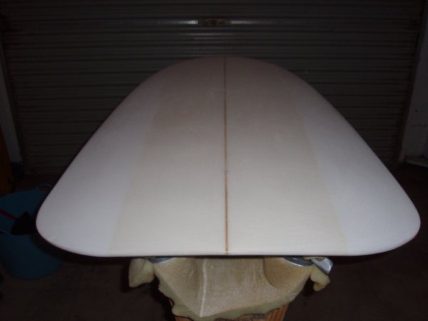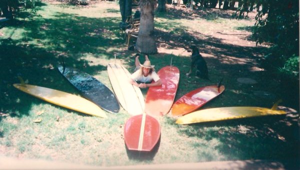 4. When did you first surf this board?The board was always a part of my life since I grew up looking at that board in the garage, and occasionally seeing Dad ride it at Jalama Beach, or on surf trips to Mexico. As a little kid, I thought it would be perfect for me to ride as a surfboard. My Dad didn’t let me ride the board until I was old enough to not lose my boards on the rocks. I was discouraged from ever using a leg-rope, so I got used to hanging on during wipeouts. By that time I was older, and less interested in the board, so I never did ride it until I was in my mid-twenties. I was living on Maui at the time, and was on a trip to see my parents in California when my Dad told me that he wanted me to have the board. So I took it back to the Islands with me. I guess it must have been about 1998 when I rode the board for the first time and I would have been 25 years old.5. I've read that the board was 4'4" x 23" -- what were some of the other design features? Lots of belly, and a very dished out deck. It must only be 1” to 1½” thick through the middle. The tail came to flat with no vee or rocker, but the board is mainly a dish... or “Pluto Platter” as Randall Stoker would say. |