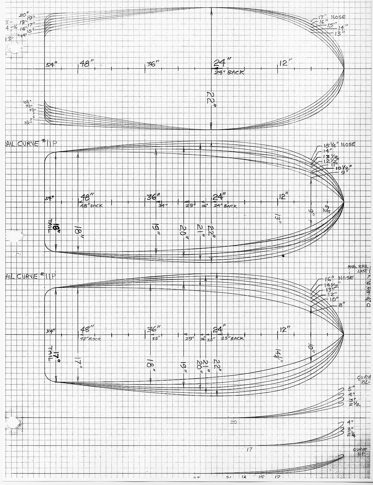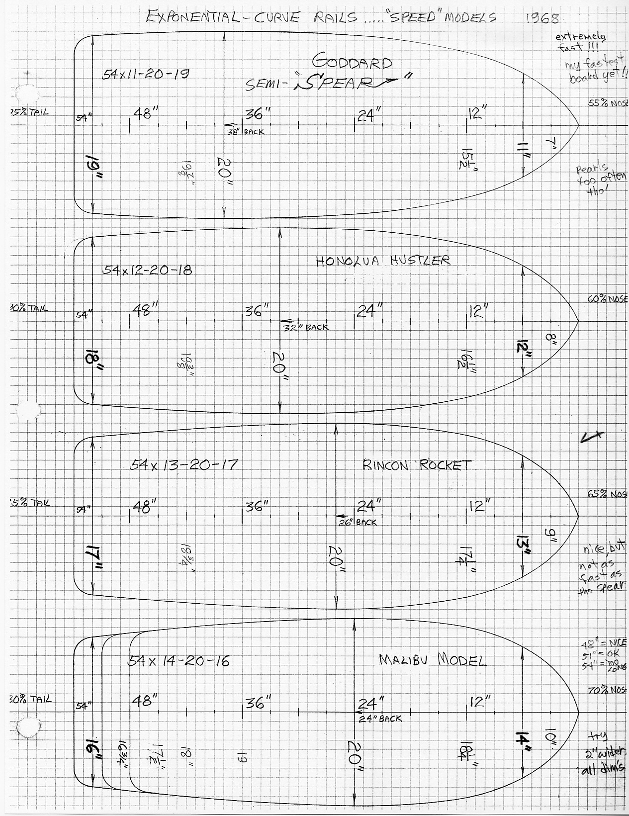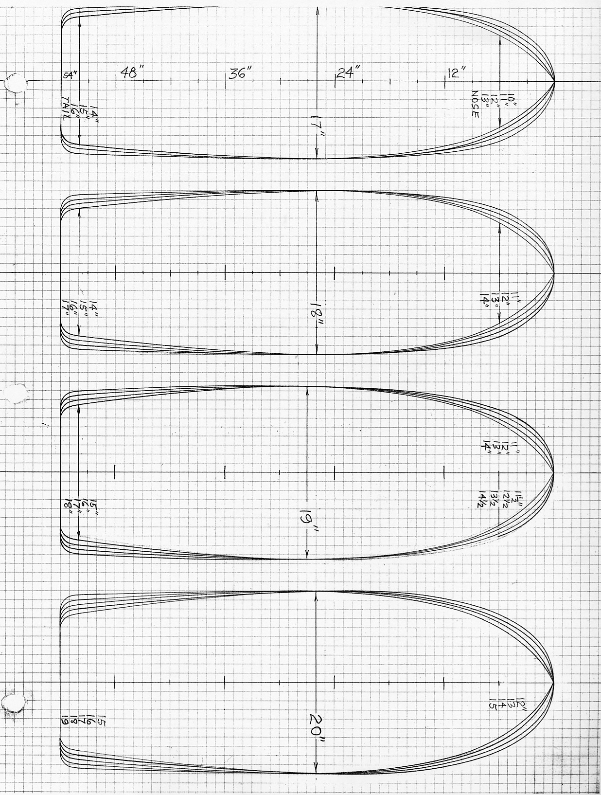 fall of 1968, I drew the 54" x 20" boards, ALL with 17" tails on this