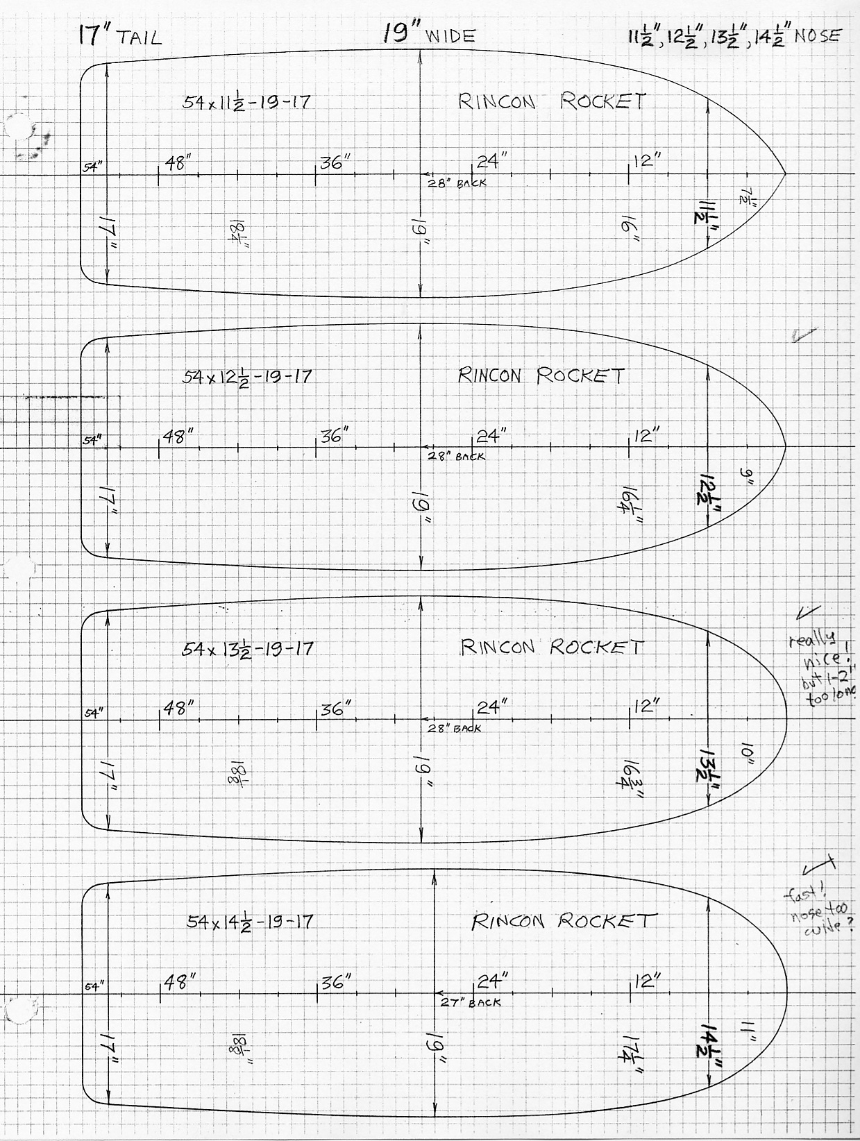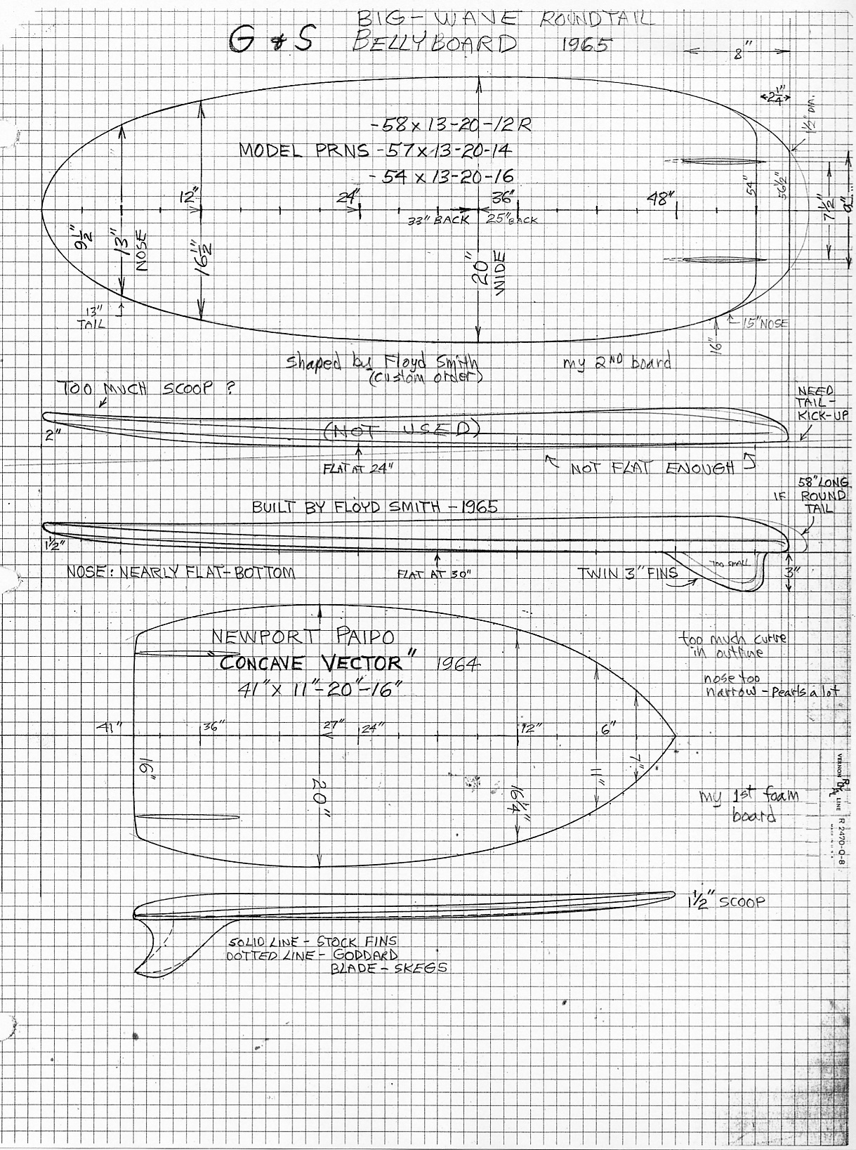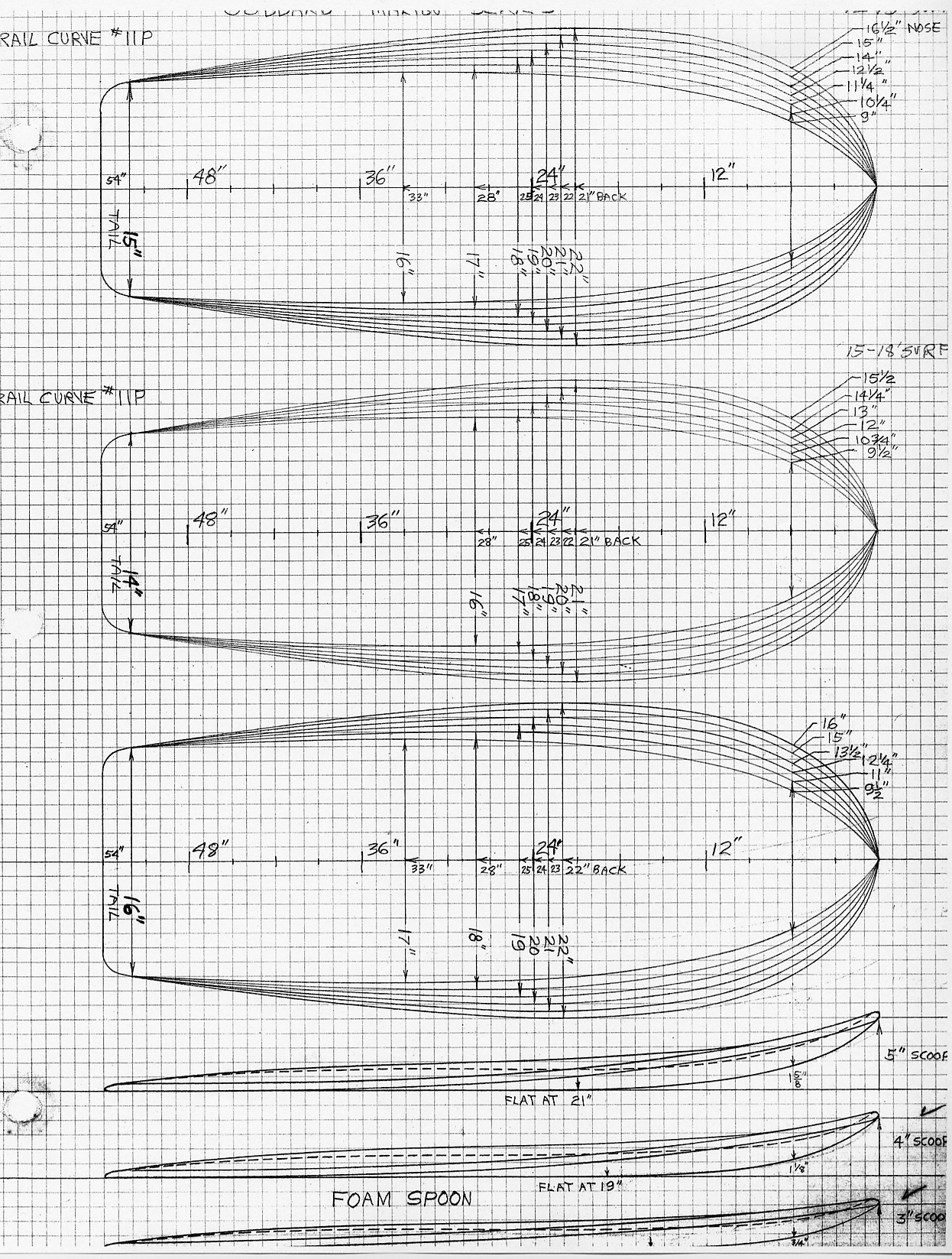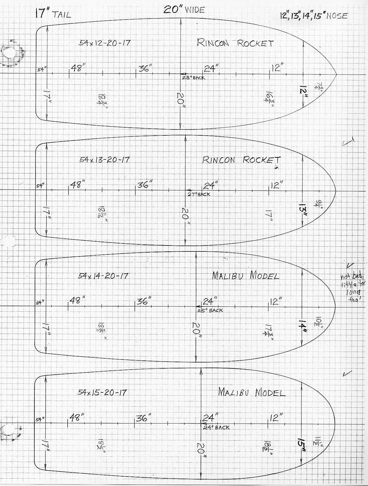 fall of 1968, I drew the 54" x 20" boards, ALL with 17" tails on this