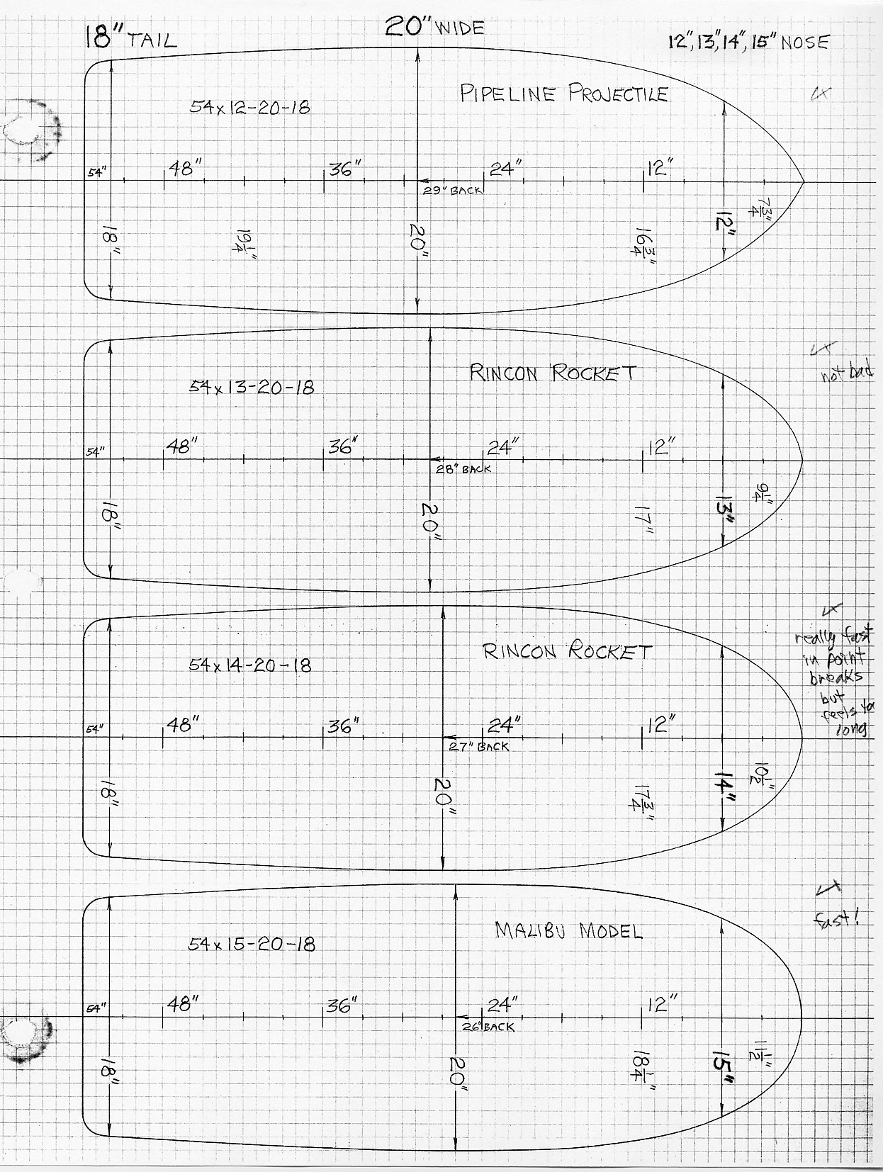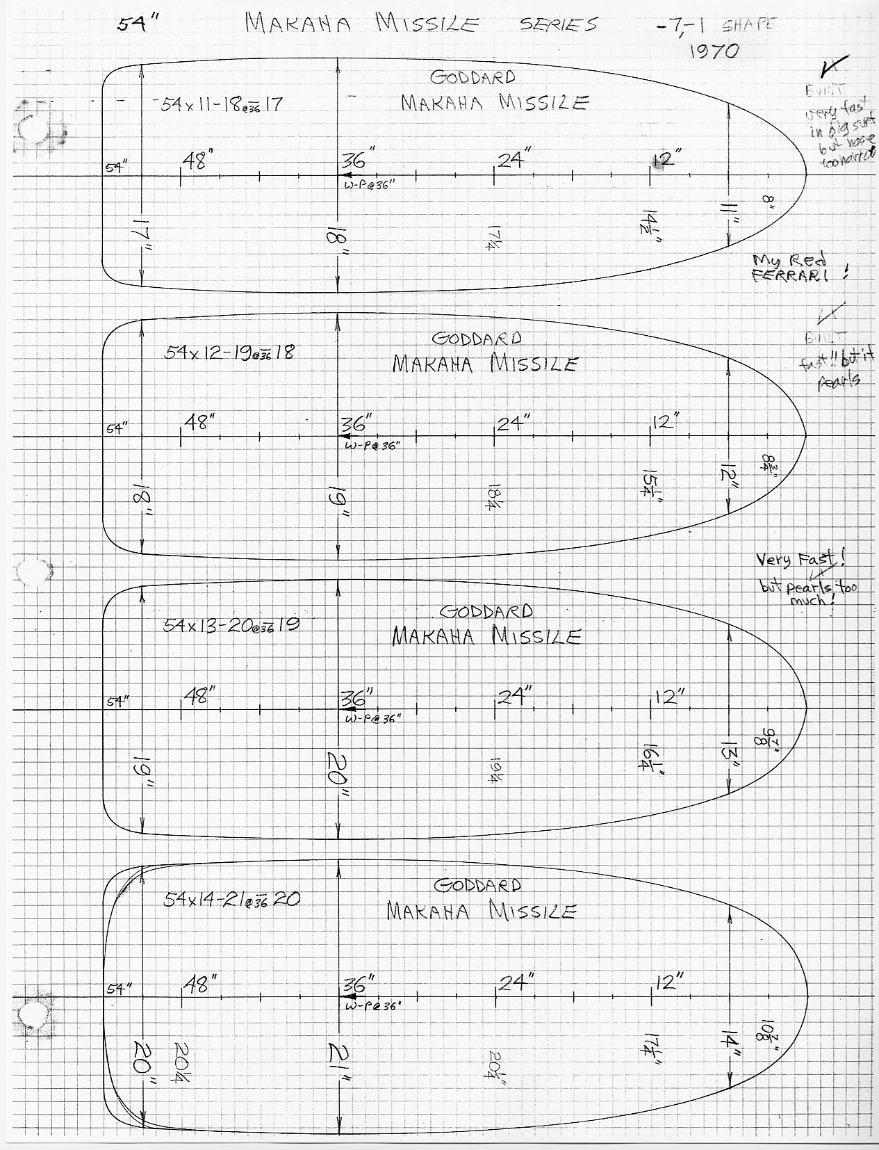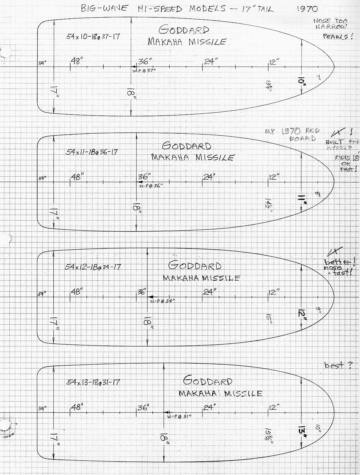 built the 54" x 18" "Makaha Missile," and the 51" x 21" "Twin Fin
