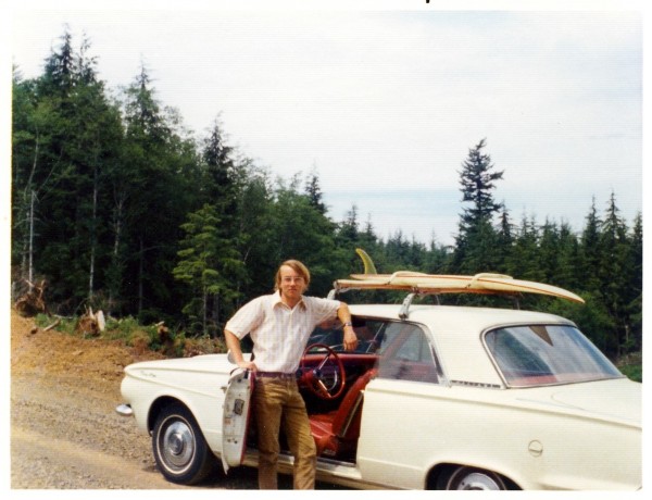 June 1973, somewhere on the S. Oregon coast, W.A.V.E. Hollow surfboard on the Valiant