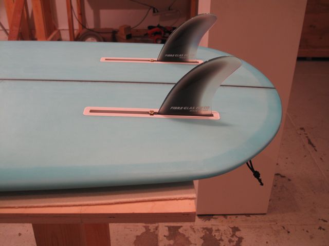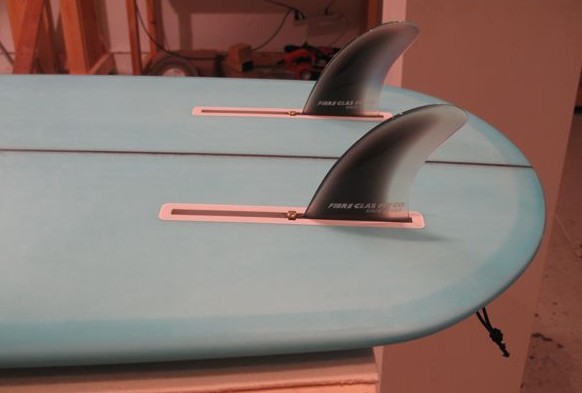 has two fin boxes placed well off the rail -- 4.5" out from the