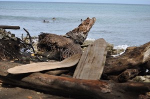 looked like oars. I wondered whether another origin of surfing is when