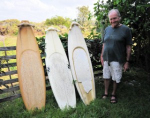Paul with three of his boards. The board on the far