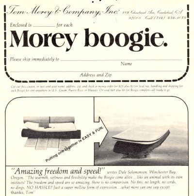 Note 2: Below is the third Morey boogie advertisement appearing in Surfer Magazine.