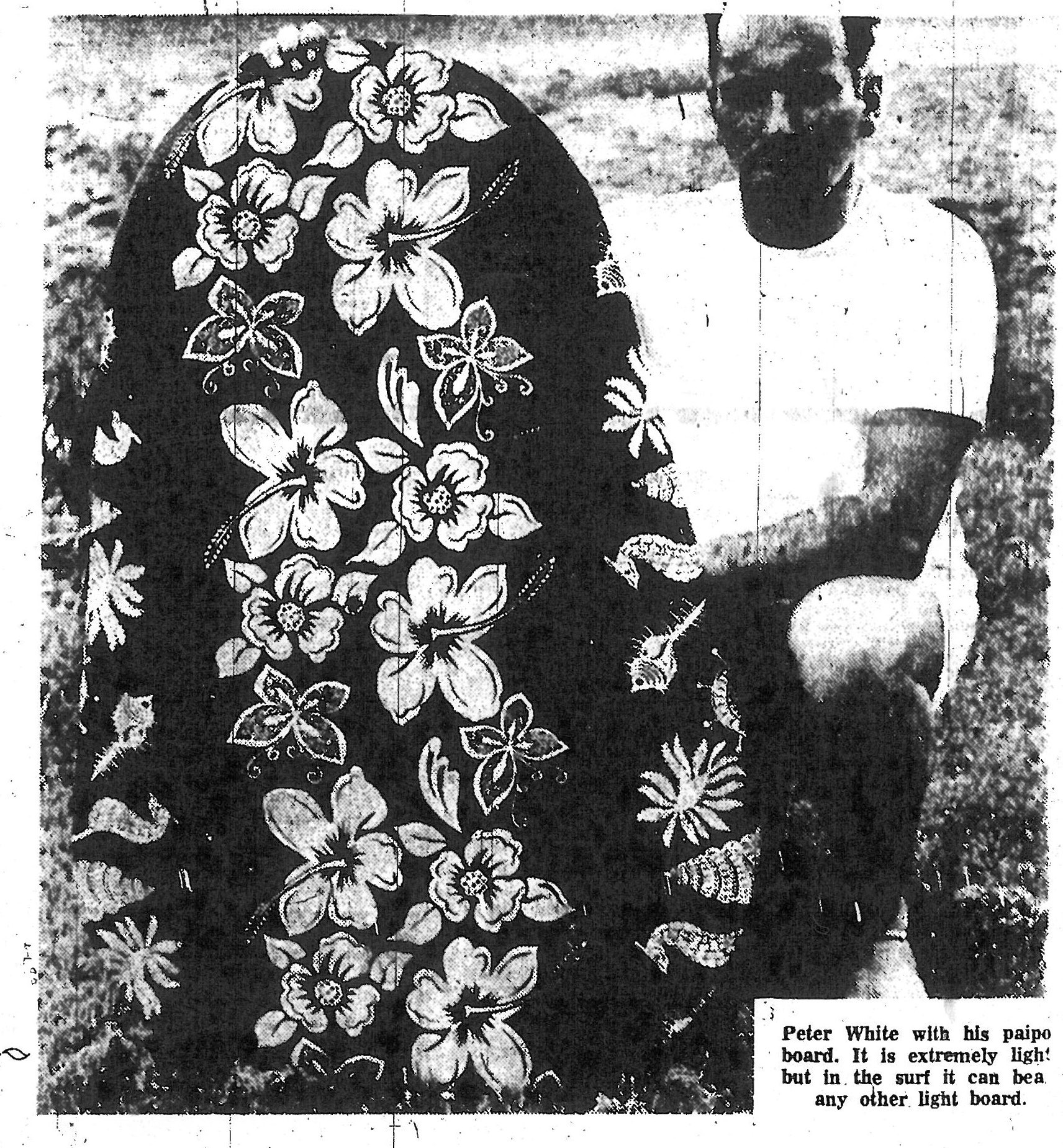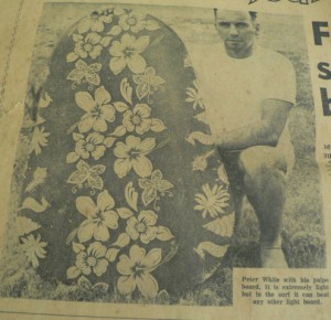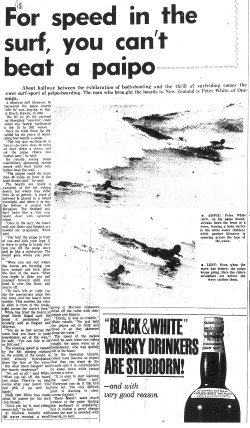 New Zealand newspaper paipo surfing article featuring Peter White and a photo included in the 1967 article.