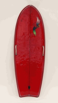 food inspired board. This board was made of recycled generic ply and had a little extra nose rocker on it.
