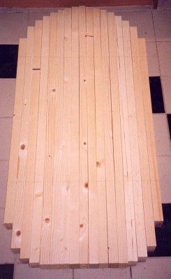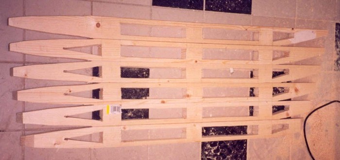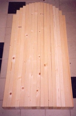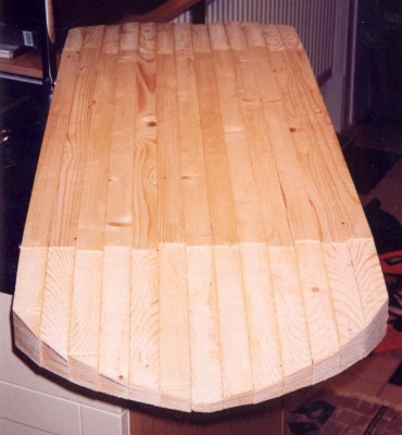 using 3.5" x 2" pine planks from a local hardware store which he then shaped,