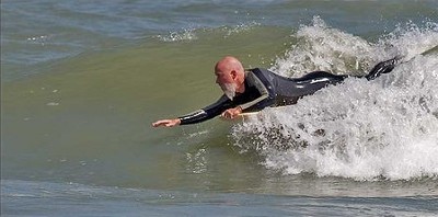 My 5' balsa Greenough-inspired paipo (the "Hurricane Fighter Plane") can function as a kneeboard, but, holy smoke!, what a great paipo it is! Now what the world needs is a really good paipo film on DVD... one that goes to the heart of the art... Polynesian roots, total history, paipo riding today... everything. Is something like this in the works? Read Chris's excellent article at WeAreH2O on his paipo experience. |