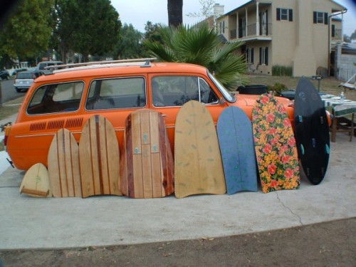 then and made them out of old balsa surfboards. The first board I made was back in 1963. My brother and I bought an old 60 pound waterlogged Hobie balsa board. We tried to surf it but got tired of it hitting us in the head so my brother sold me his half for $5. I stripped it down and made two 4 ft belly boards. I sold one for $25 and kept the other one. That how I got started. I surfed Santa Ana River Mouth on a 10ft day with that board. I was the only one to get out that day in the days before leashes. |