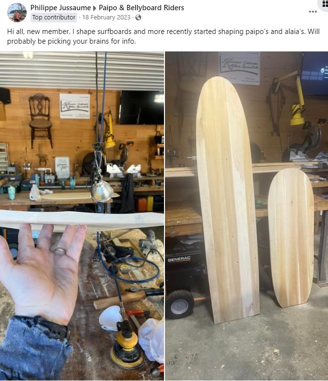 https://www.facebook.com/groups/paipobe ... 635875080/ The hands cutouts are not really a problem when riding the board, I just don't think about it. They could be handy to attach a leash or a handle. The nice thing about this board is the outline, and the rocker. My previous boards were hand made plywood boards, no rocker and straight rails. They were a bit faster in small waves but I find this outline more efficient for quick turns, it works a bit like a boogieboard, more dynamic. Someone with the tools and the will to make his own could just imitate this outline, get some rocker using boiled water to bend the nose and get a nice functional board.