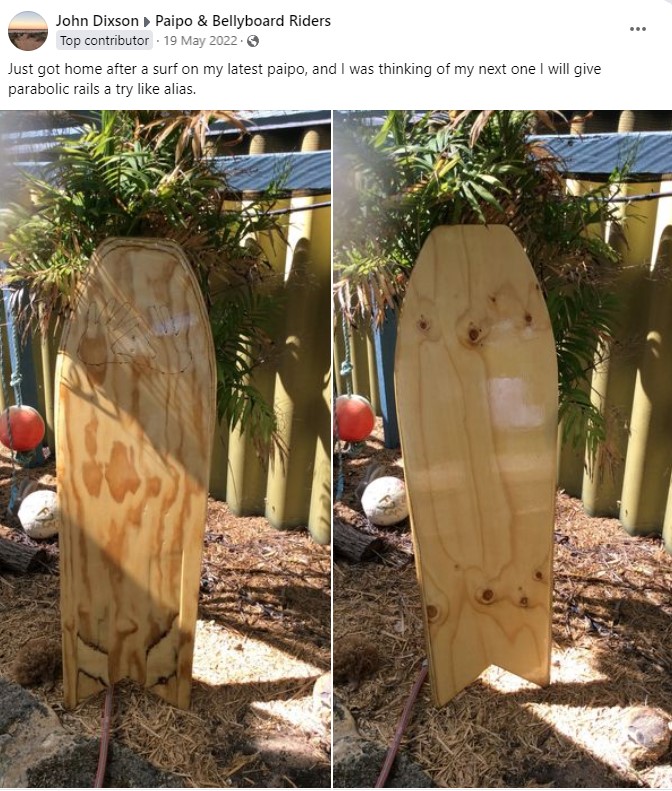Hi Keith Trevor YAmamoto rides paipos with parabolic rails in US and Hawai’i and speaks positively of them have you tried your boards without them , my boards are all 12-15” wide and hold good but my next will be 21-22 wide and was hoping a parabolic rail would help it hold a higher line .