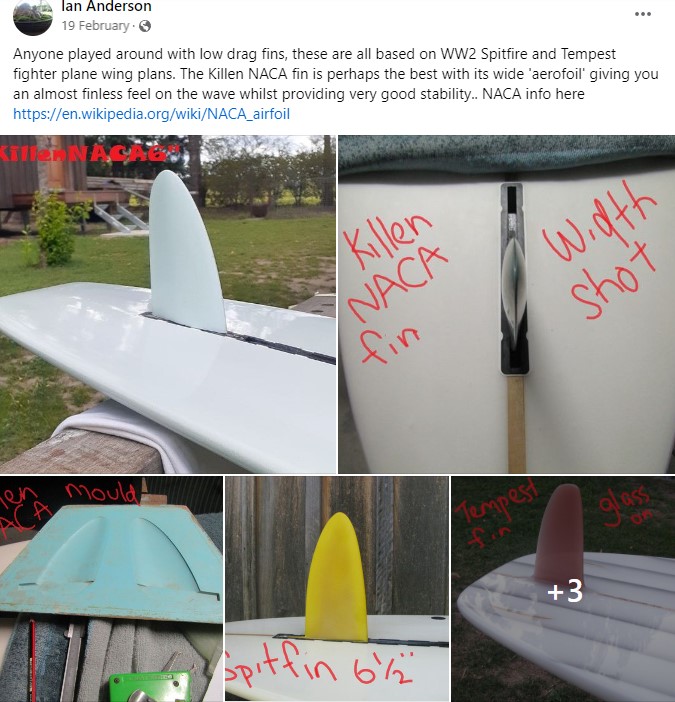Hi Bill, i will have to 'stay in my lane' when it comes to the physics side of things, the yellow spitfire wing is a cut down Horan Lexcen Starfin that was broken, the foil was laboriously wet rubbed by me, the NACA foiled fin was designed by Peter Killen and he could wax on at length about this... he has a phd in applied maths/fluid mechanics and he built maybe the worlds first functional model flow rider standing wave as part of this thesis at Australian National University back in 1975...his work was also published in Fluid Mechanics mag back in the day... Peter can talk the numbers/chords ad infinitum, I just like the 'feel' of these type of fins for relaxed 'point and shoot' surfing. I have an article on Peter's work that was published in Tracks mag back in 76, will find it and post it later. Lately he has been 3D printing some NACA fins and has given me a few but I prefer to make fibreglass ones in the mould..