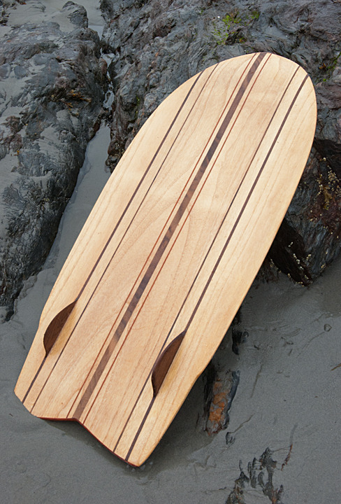 Luckily, a local craftsman was offering his first, prototype paipo for sale. Paulownia, mahogany and walnut (42X22X3/4). Ooo, getting very excited.