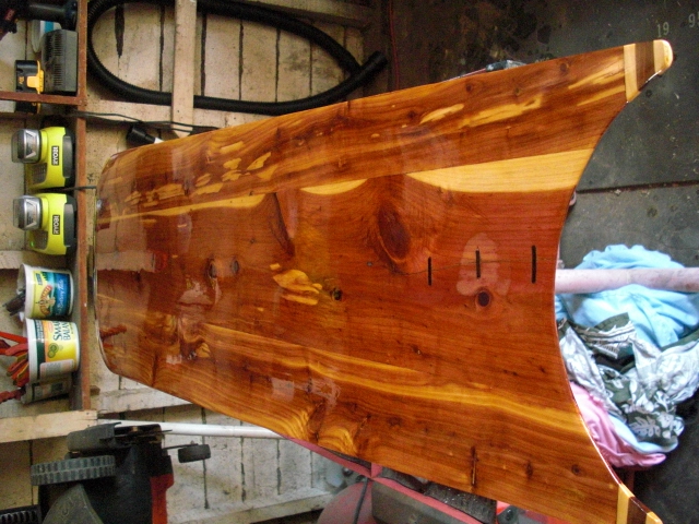 The paulownia board started out at about 12mm and has very bladey rails, its similar to another board that Ive ridden in all sorts of conditons (so I know the paulownia can take it) I started a couple of other cedar boards at 22mm thickness but decided to get it cut length ways so Ive ended up with 10mm thickness. When I glued up the blank yesterday. One plank was very concave as a result of cutting? Every time I clamped, the boards would jump out. Afer four attempts I decided to use another piece as the first bit had too much concave. Is 10mm for cedar to thin? Im concerened it might split length ways? + as the centre board has a bit of conave to it, will that weaken it?