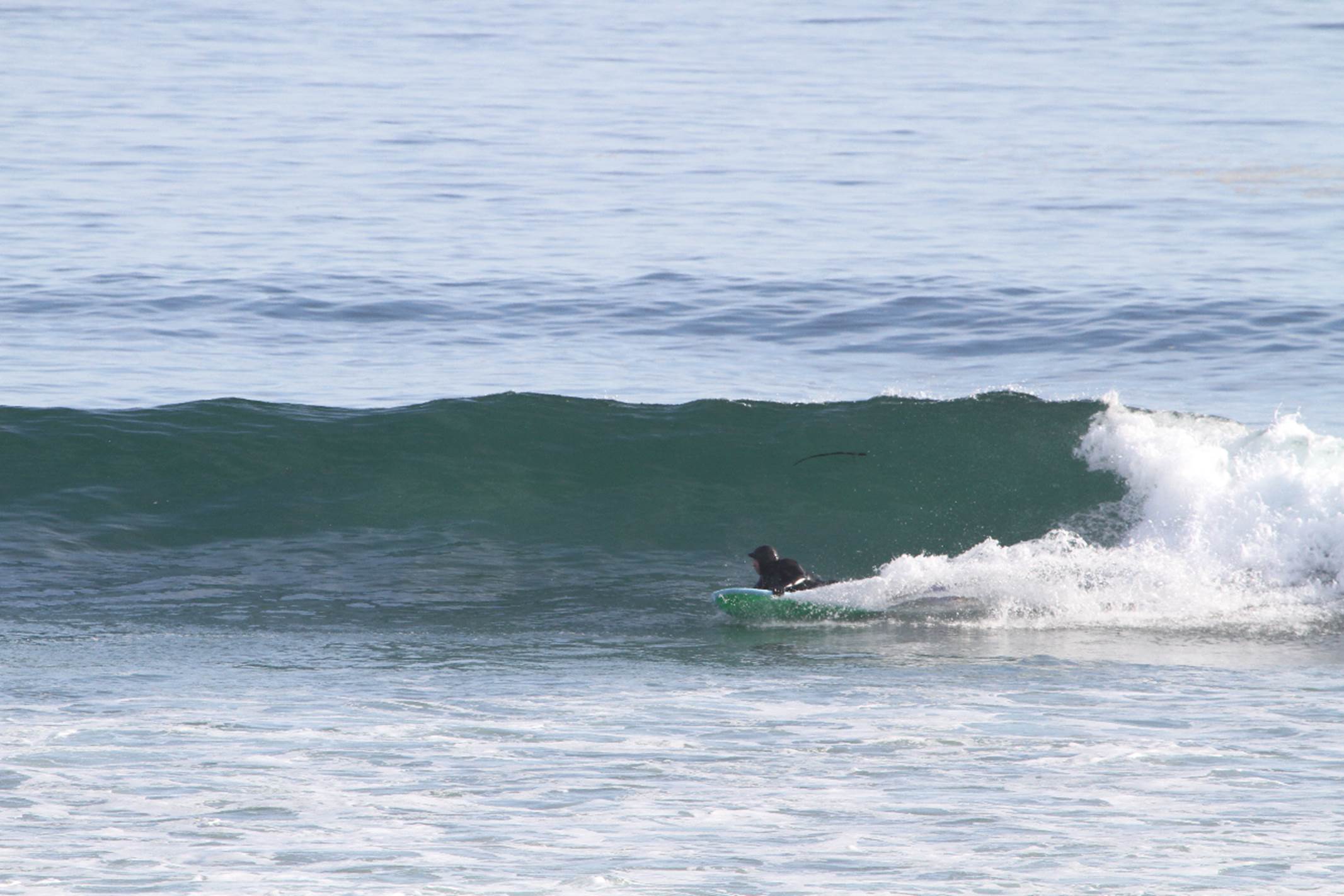 Well, that isn't me in that first photo, but yes, that swing-wide set caught ALL of us inside, and yes, I did get hammered. Remember that at 75 liters of floatation, this thing has a lot more float than even your typical 9-0 longboard, so one of the aspects of riding it is that you are NOT going to duck-dive it in surf much over 5'? But no matter, that's what God invented leashes for, so it's not a big deal. Even though it IS so floaty..............for some reason it pulls through waves (when ditched) much, much easier than any longboard I ever used to have? It may have something to do with the reduction in length..?