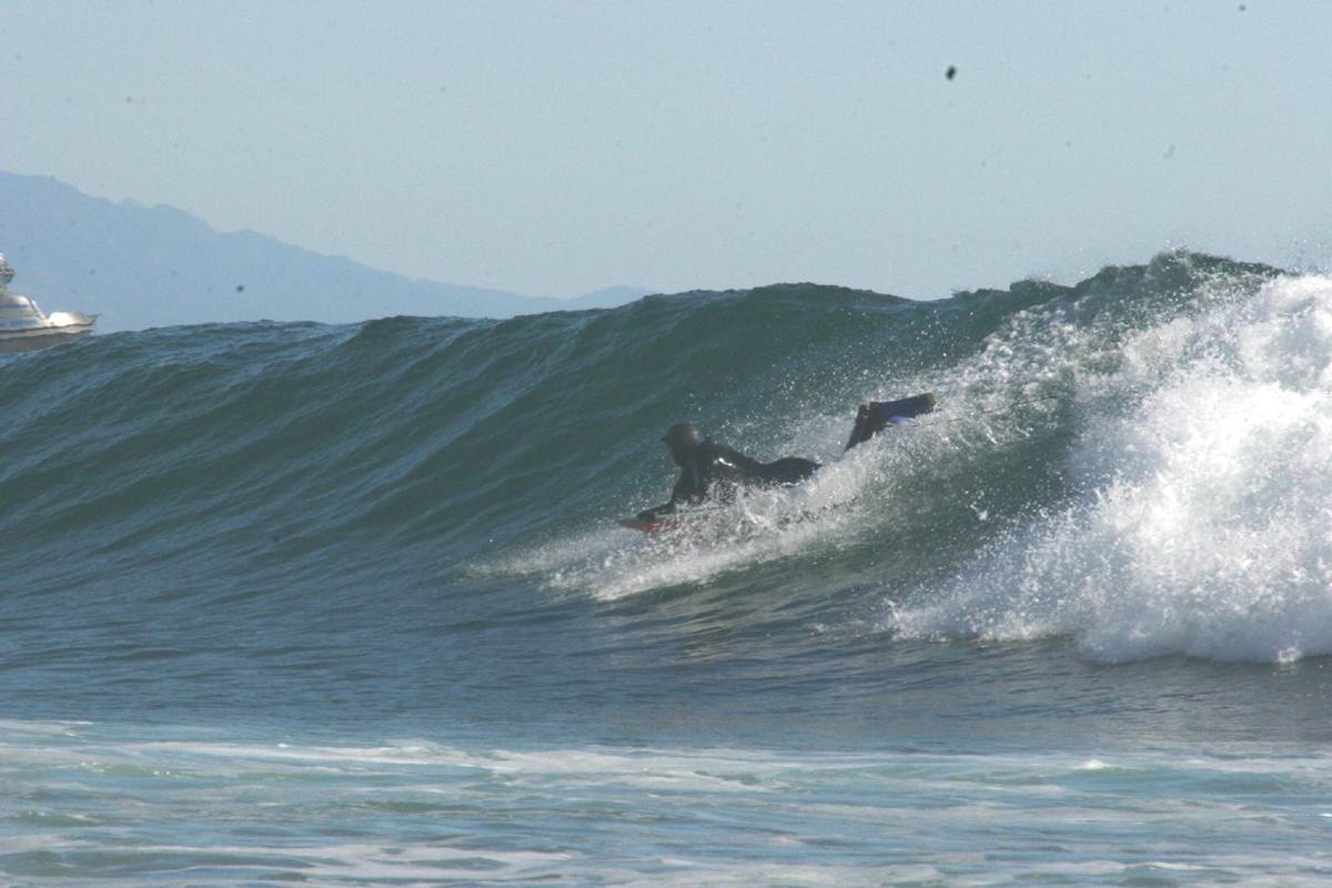 Well, that isn't me in that first photo, but yes, that swing-wide set caught ALL of us inside, and yes, I did get hammered. Remember that at 75 liters of floatation, this thing has a lot more float than even your typical 9-0 longboard, so one of the aspects of riding it is that you are NOT going to duck-dive it in surf much over 5'? But no matter, that's what God invented leashes for, so it's not a big deal. Even though it IS so floaty..............for some reason it pulls through waves (when ditched) much, much easier than any longboard I ever used to have? It may have something to do with the reduction in length..?
