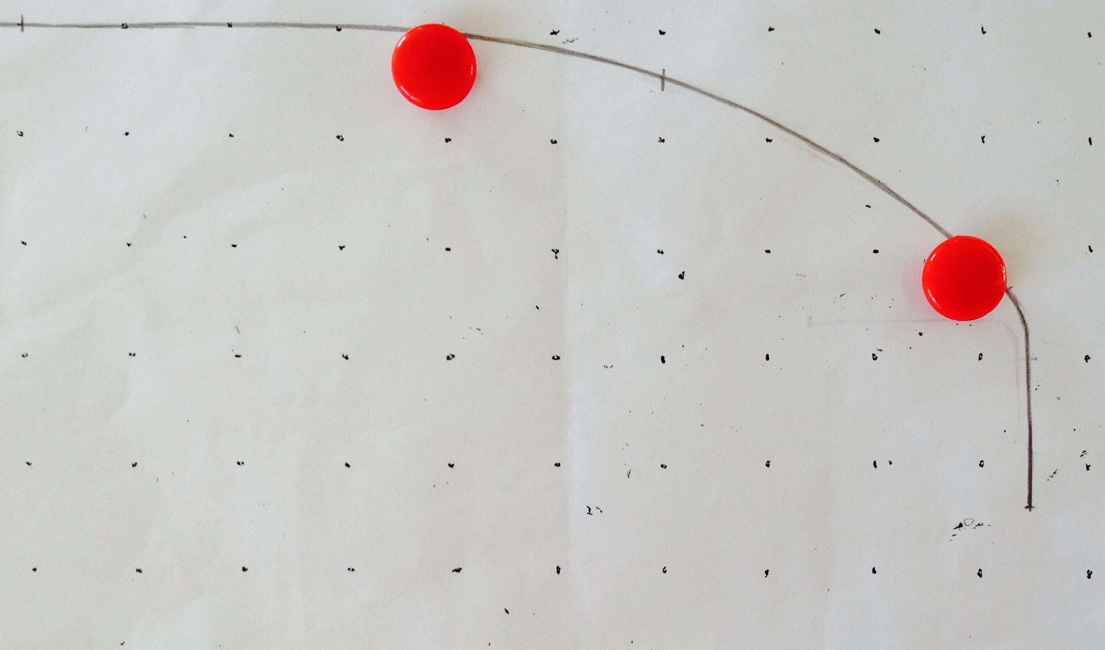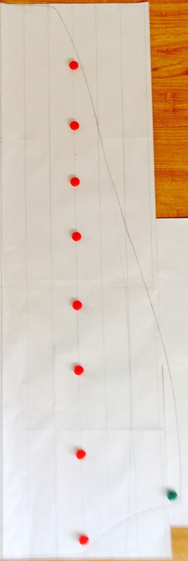 Here's the right half of the shape. I'm keeping the middle 14 " of the deck flat (red dots) and then rolling the sides down.