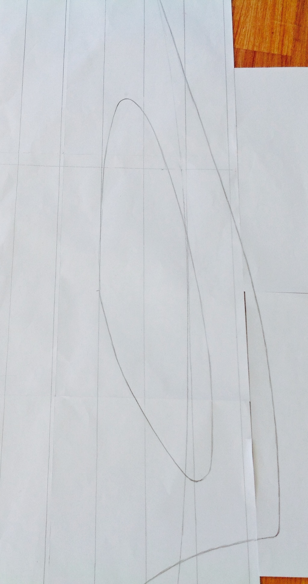 Here's the basic planshape, it looks too wide in the tail but remember the sides are rolled down so it won't be as wide as it looks.