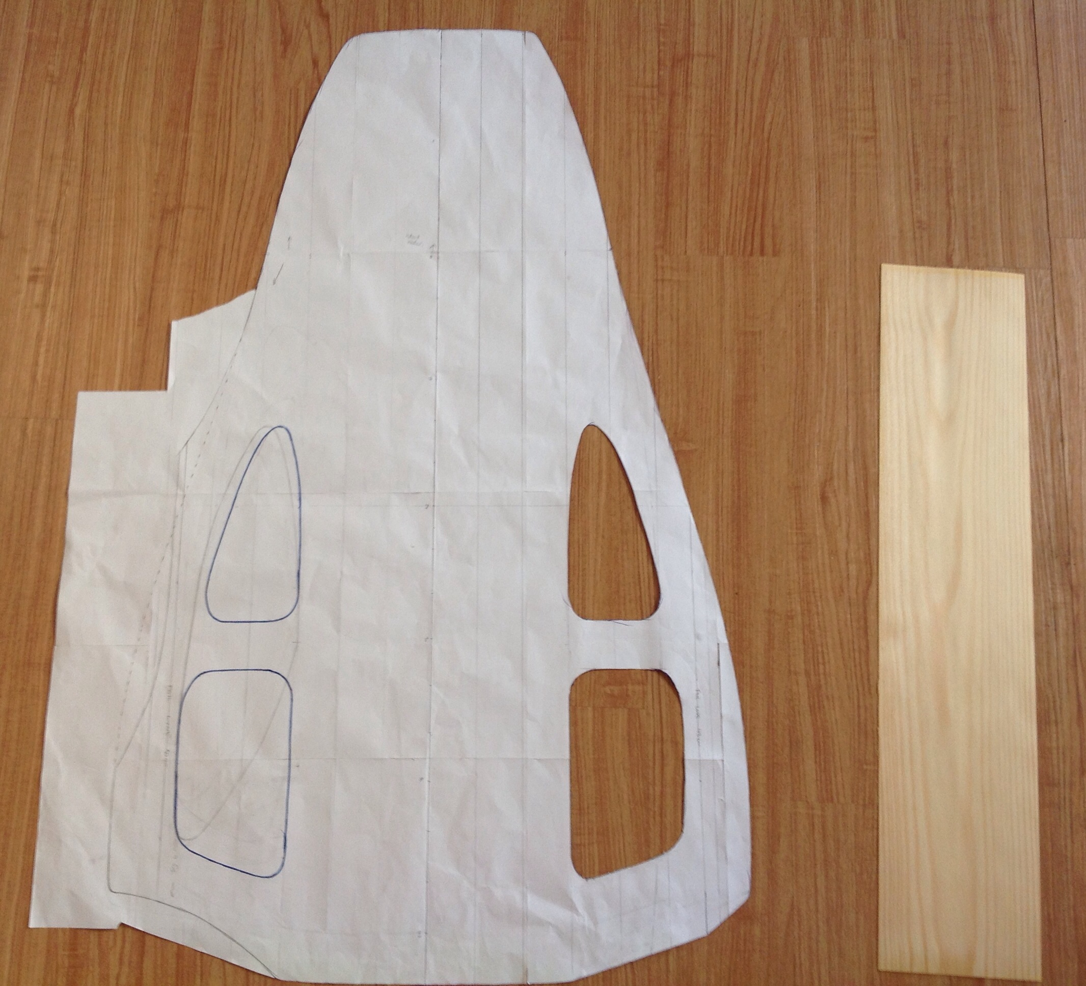 So with the mold taking shape, I'm looking at cutting out the veneer to get the best grain direction for strength.