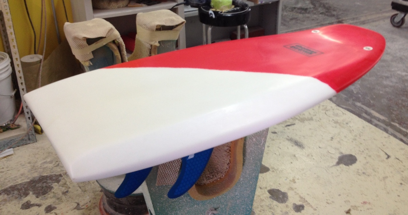 I was surprised by how stiff the previous TBG2 was, despite the absence of a stringer. A little flex is a good thing in my book, so this time I'll go with one layer 4oz E-Cloth on the bottom and one layer 4-oz E-cloth plus one layer 4oz S-cloth on the deck. Still no stringer, but no VectorNet, Carbon Fiber or other costly high-tech stiffeners either. Everything else has been left unchanged. I really like how well the TBG2 performs, especially how easy it duck-dives. Plus the flat nose provides the perfect place for hand placement. Most exciting thing is that I've been able to negotiate some favorable pricing with Marko Foam and my glasser which will allow me to market the TBG2 for under US$300. That's a real breakthrough.