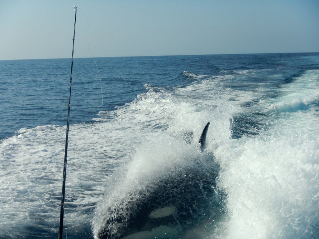 Just had to post the shot from a buddy in Cabo of Orca in the trolling spread.