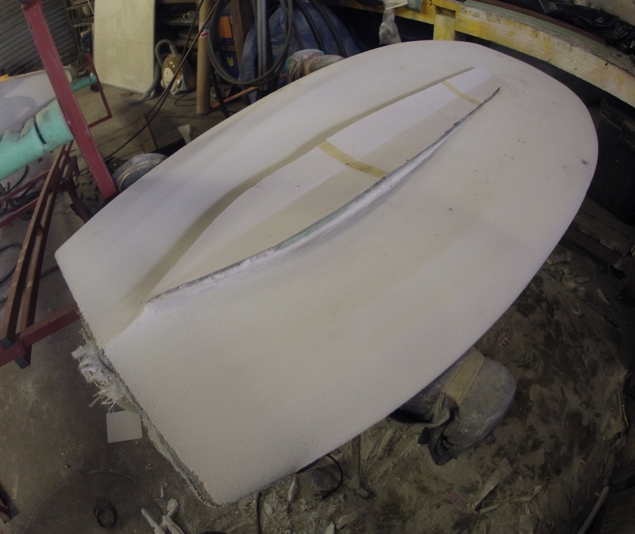 Getting close to glassing,this is when i embellish the finial shape ,a lot of standing around with hand on chine with a 1000 yard stare, it can take days.