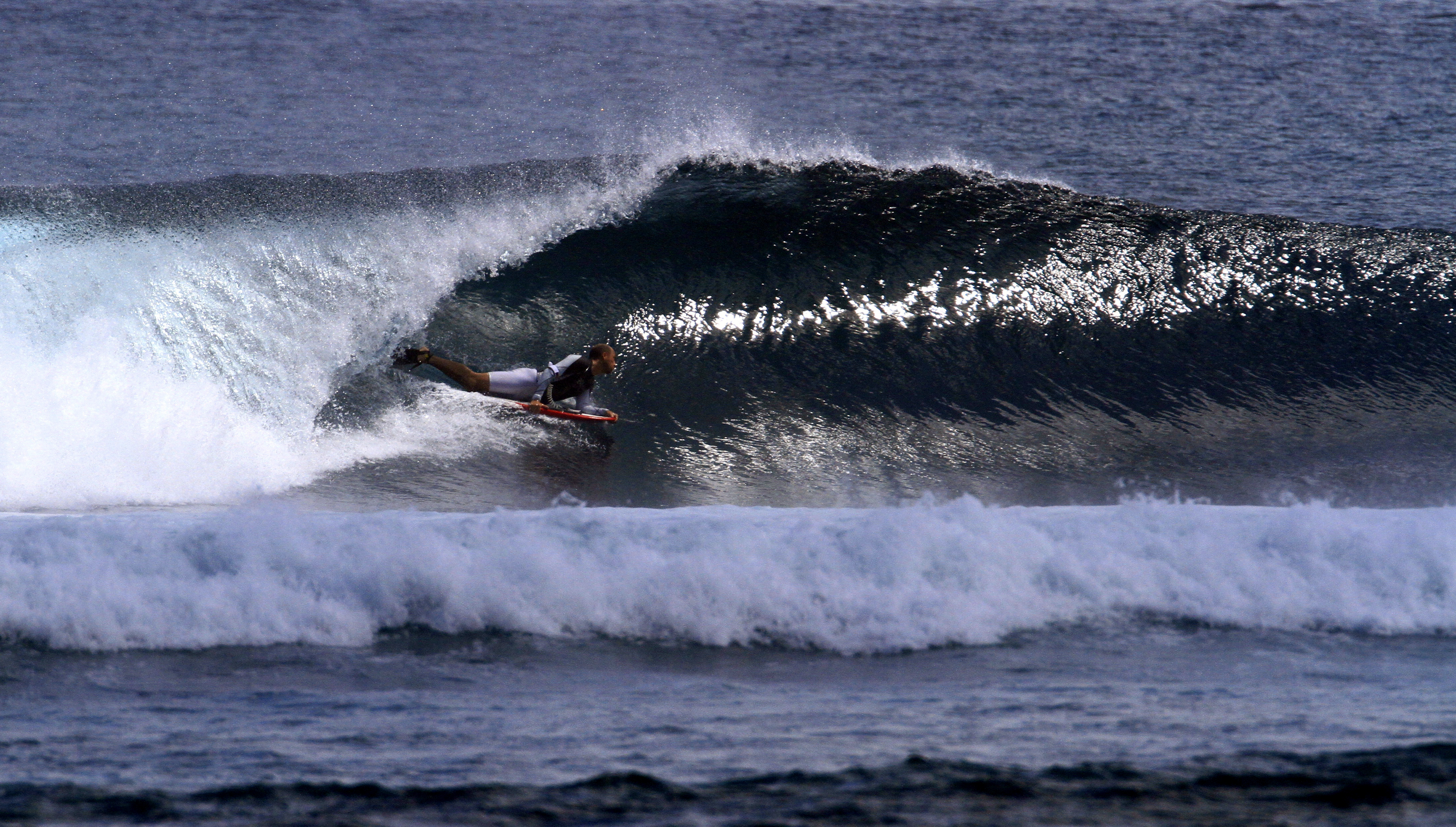 I don't care for the skegless 'slip-'n-slide' feeling of bodyboards, or even wide-tailed 'Guitar-Pick' style paipo boards. Oh well... it's all relative."